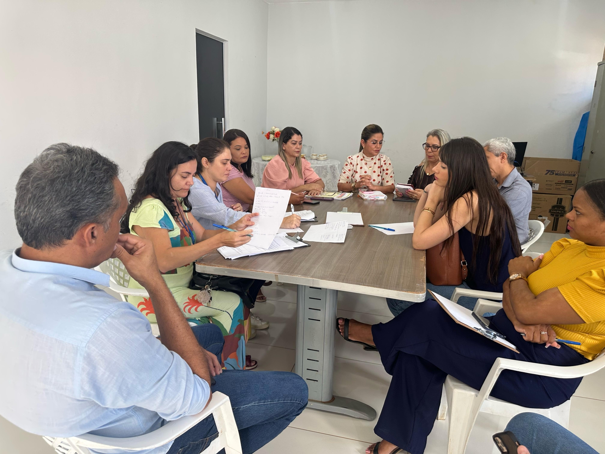 Na manhã desta quinta-feira, 3 de abril, a prefeita Nega e a equipe da Secretaria de Assistência Social receberam, no CRAS de Goianorte, o promotor de Justiça Dr. Fernando Sena, sua assessora Sandy e a equipe do Centro Interdisciplinar de Palmas do Ministério Público Estadual, composta pela assistente social Darlin Didiane e pela psicóloga Melissa Cattini. A visita teve caráter institucional e fez parte da inspeção anual do serviço de execução das medidas socioeducativas em meio aberto.