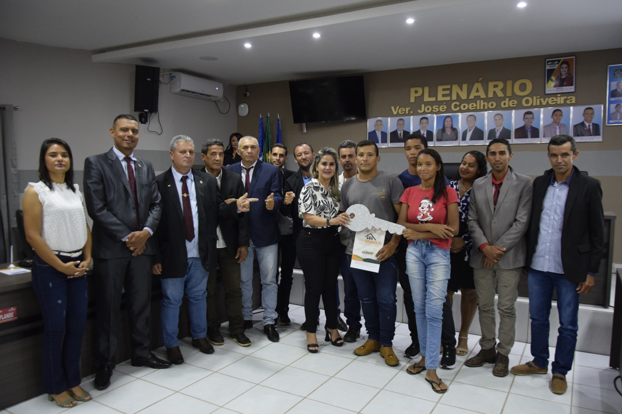 Em sessão solene, com a presença de todos os vereadores, do vice-prefeito Elivan Barbosa, com a casa de leis repleta de populares, na quarta-feira, 16/08, a gestão da prefeita Nega, no ato por ela representada, fez a entrega de moradias populares a famílias de baixa renda. Casas estas construídas com recursos próprios do município, que fazem parte do objetivo da gestão em construir e destinar moradias dignas às famílias de Goianorte.